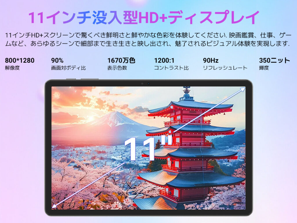 11インチの大画面と滑らかな90Hz駆動